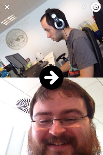 Frontback consiste básicamente en realizar una fotografía con la cámara trasera de tu teléfono y, a continuación, unirla con una fotografía hecha con la cámara frontal, de manera que se crea una composición original y, en muchos casos, divertida. Además, se une el hecho de que la segunda fotografía se "dispara" automáticamente a los pocos segundos, de manera que el resultado será medio improvisado.